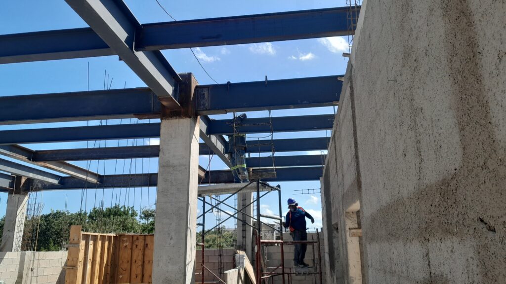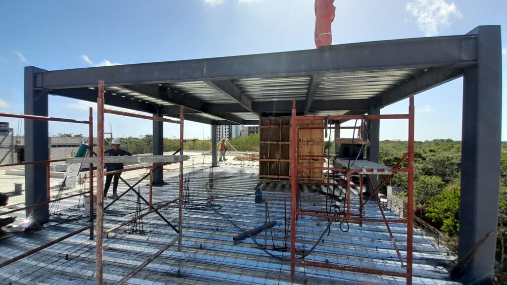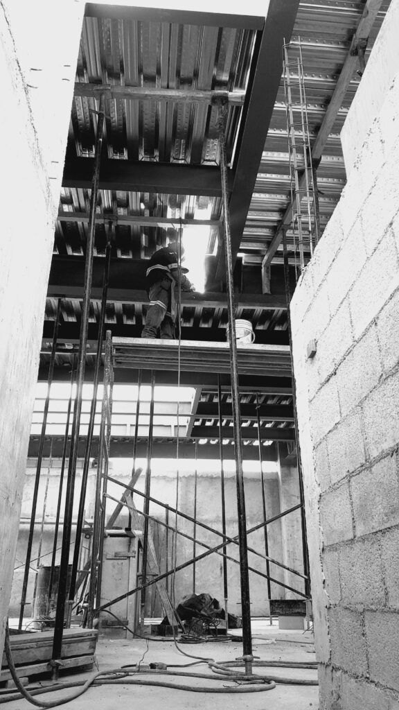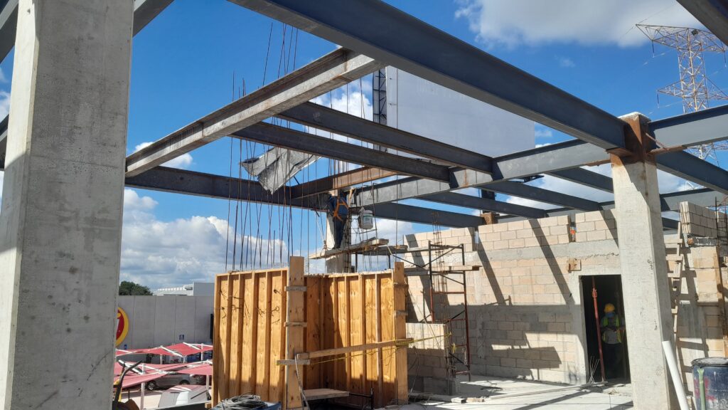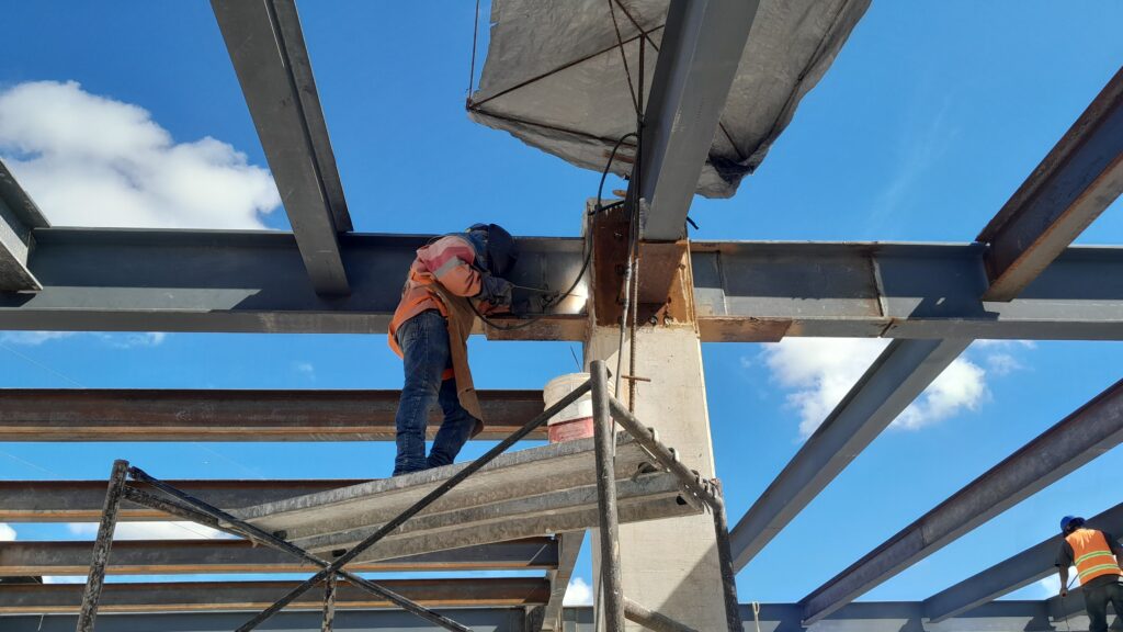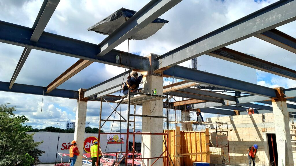 Responsables del montaje de vigas IPR para la posterior instalación de losacero, tanto en entrepiso como en azotea, así como el habilitado de cinturones a base de placa de acero en columnas para la interconexión de la estructura de concreto