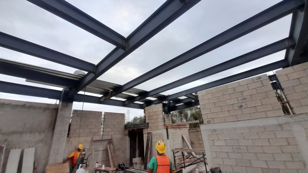 •Estructura metálica principal: Se instaló una estructura metálica según proyecto aprobado; ejecución de la losa.