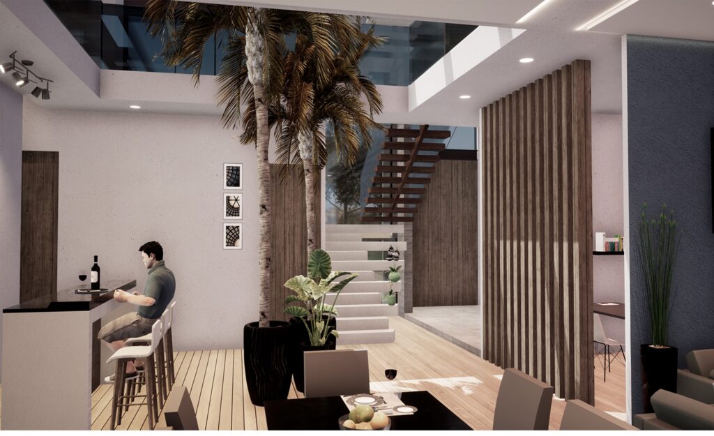 En el exclusivo Paraíso Country Club, en Emiliano Zapata, Morelos, se erige una residencia que redefine el concepto de hogar contemporáneo. Con una superficie de desplante de 215 m² y 418.5 m² de construcción, esta vivienda de dos niveles se concibe como un santuario de luz y naturaleza, donde la arquitectura se fusiona con el entorno.