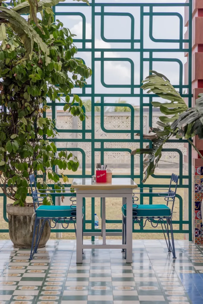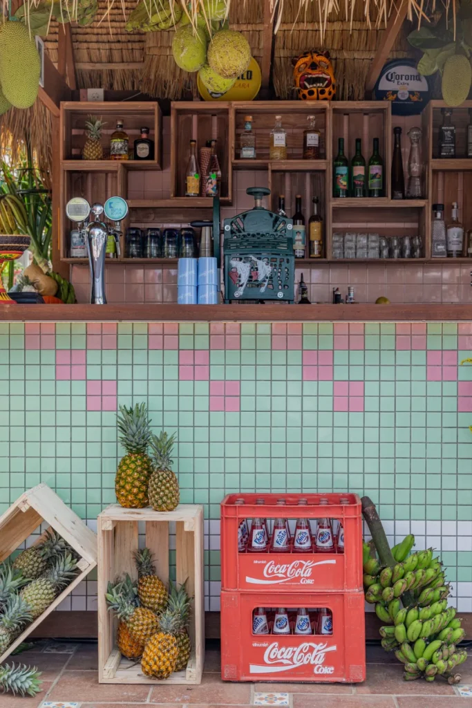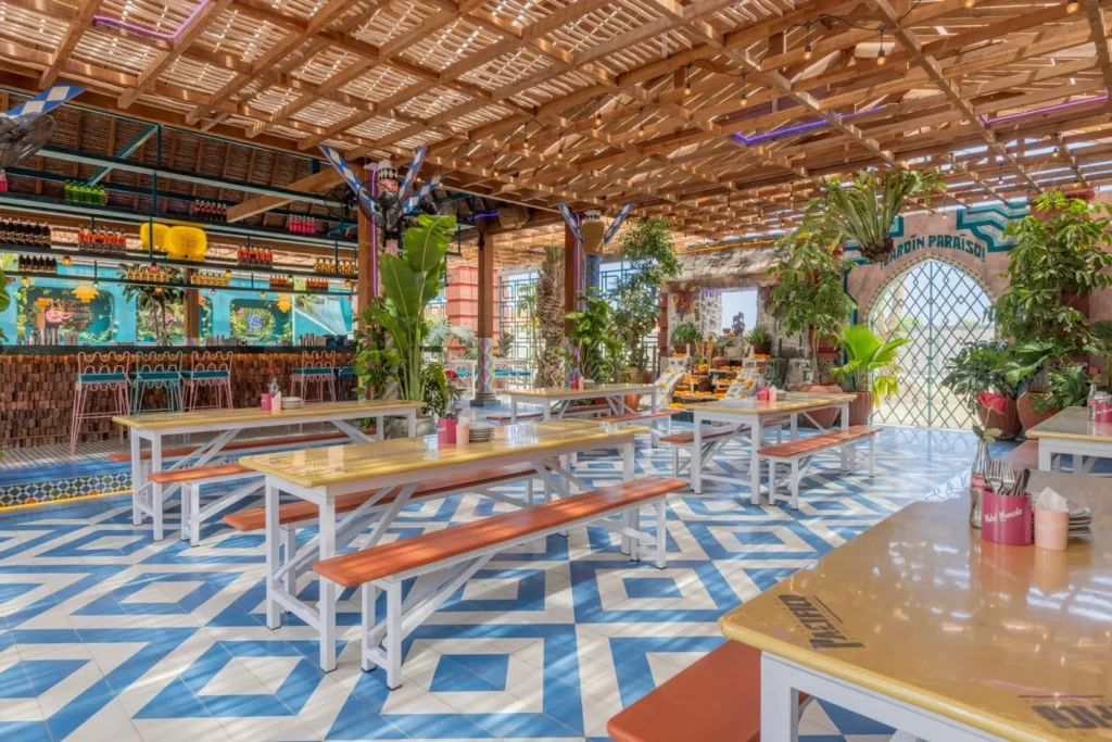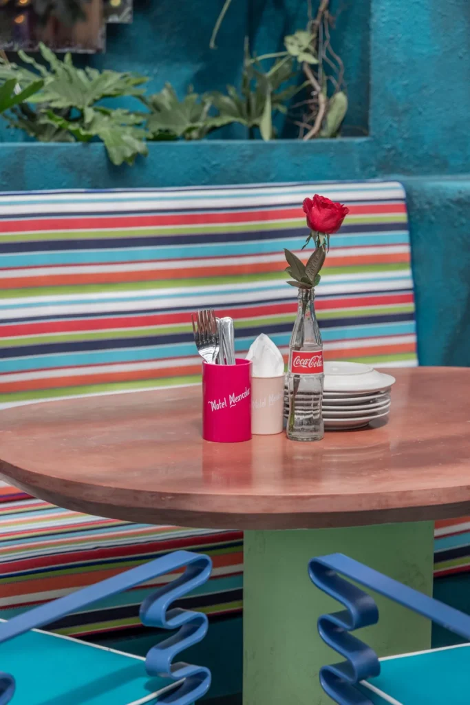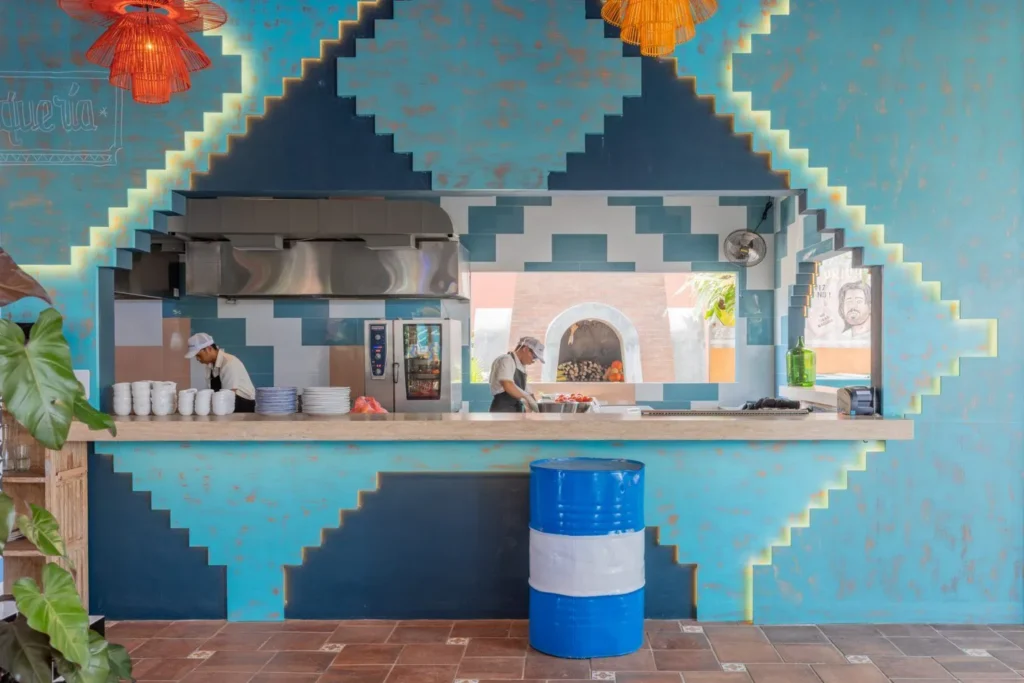 Cada rincón del lugar estalla en color, evocando la energía y vitalidad de las calles mexicanas. La combinación de azulejos coloridos, textiles llamativos y una iluminación cuidadosamente pensada genera una atmósfera animada y estimulante.