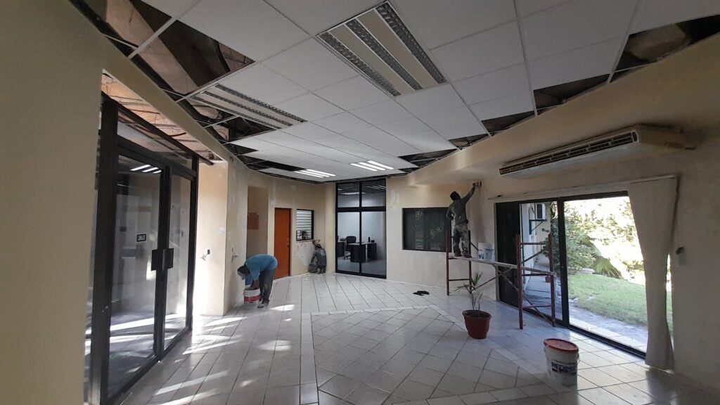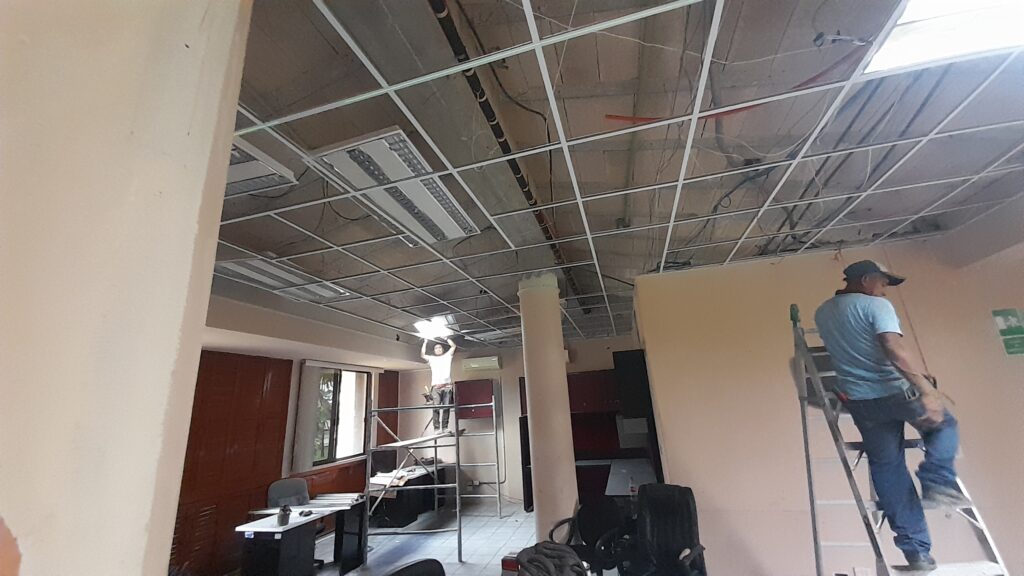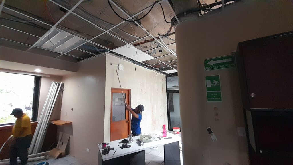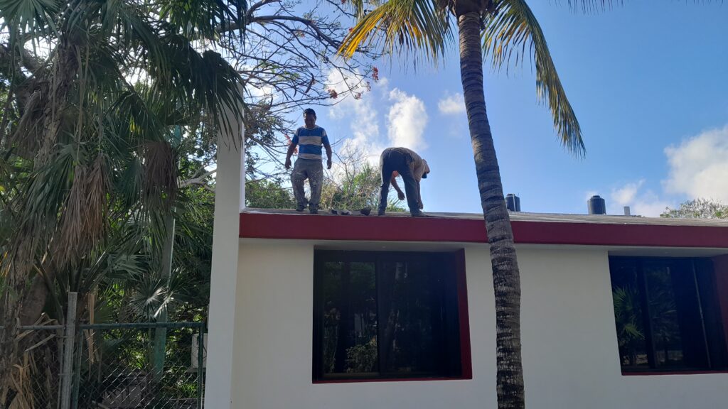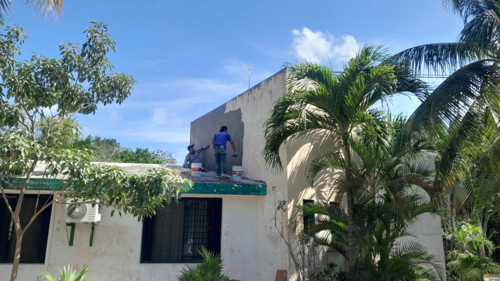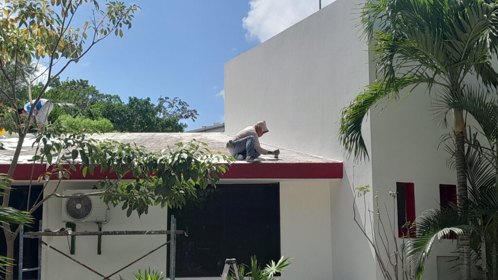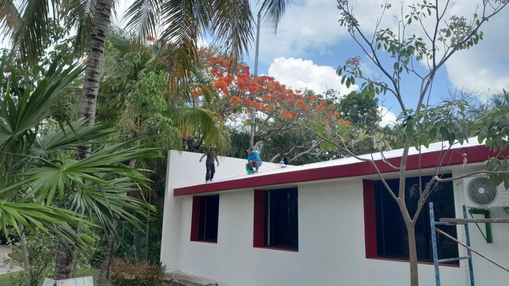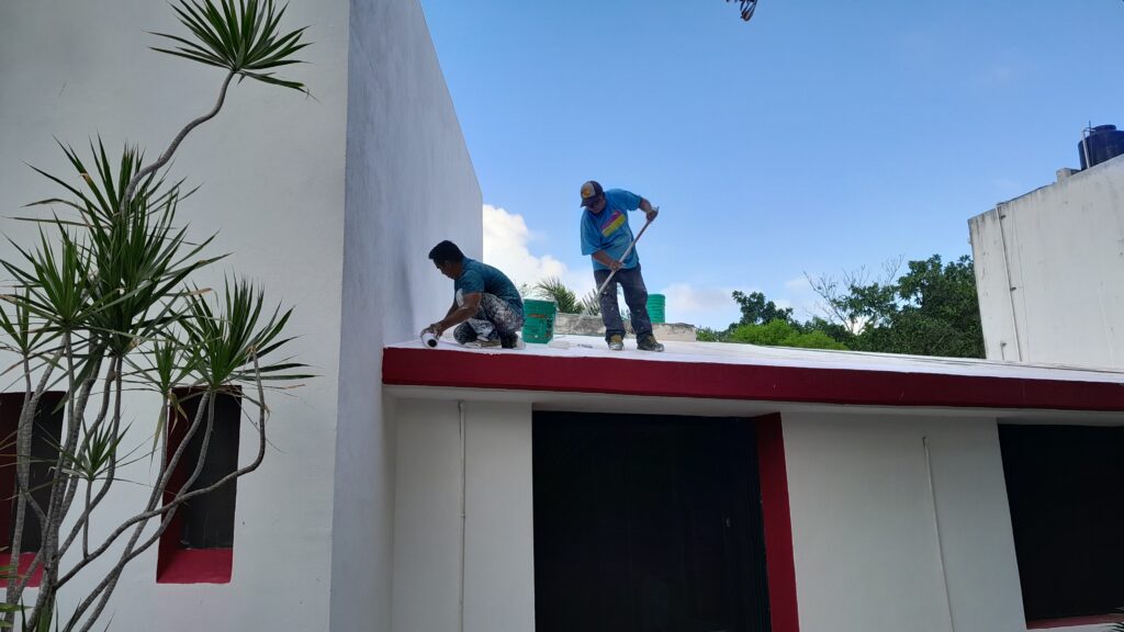 En la azotea se retiró todo el impermeabilizante existente, se realizó la reparación de grietas, y la instalación de un impermeabilizante acrílico de 5 años con malla de refuerzo.