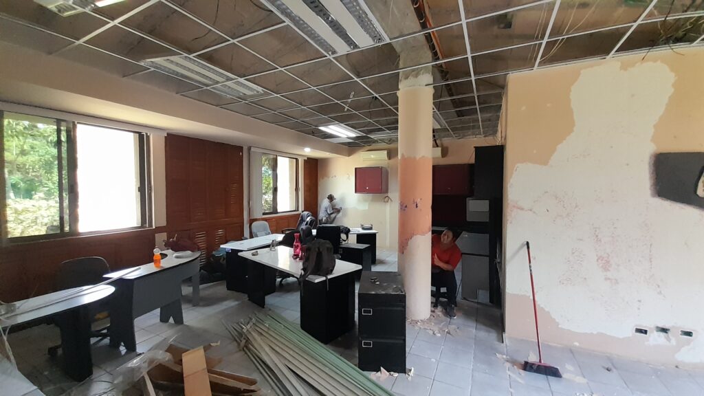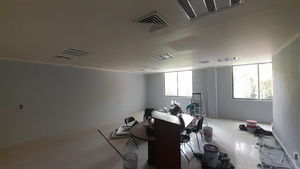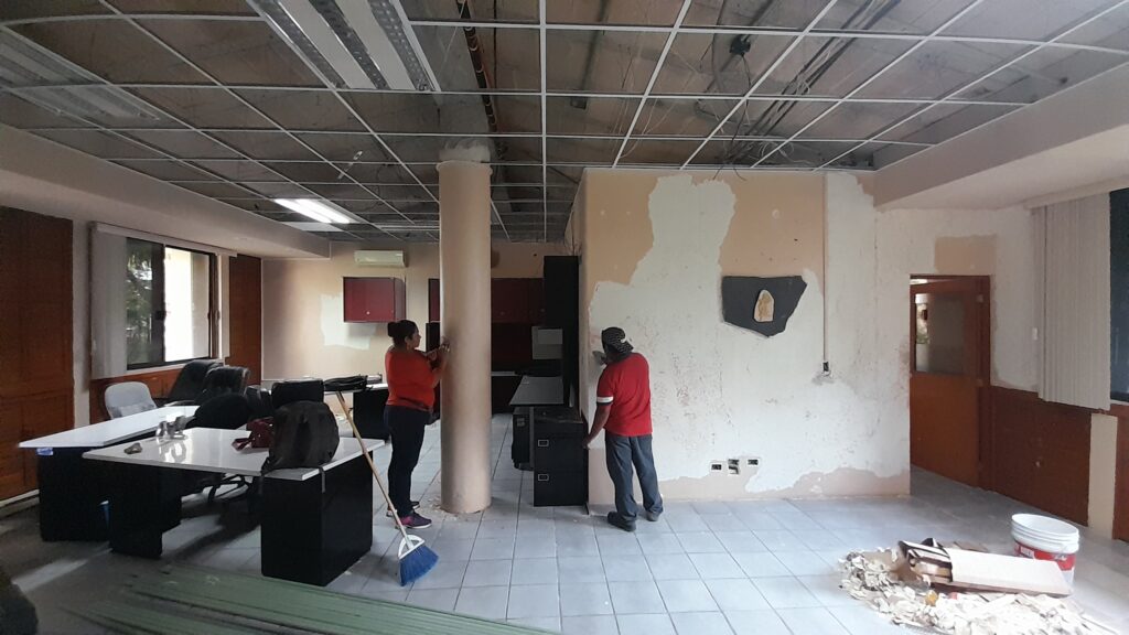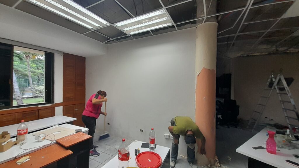 El proyecto abarcó la intervención del interior (muros, carpintería e instalaciones), fachadas y azotea. En muros interiores se retiró la pintura y el acabado existente, reemplazándolo con una pasta fina, para posteriormente la aplicación de pintura blanca; también se realizó el reemplazo de la instalación hidrosanitaria (monomandos) y eléctrica (tubería, cableado, accesorios). Para los plafones se realizó renovación de los mismos y mantenimiento a todas las cancelerías.