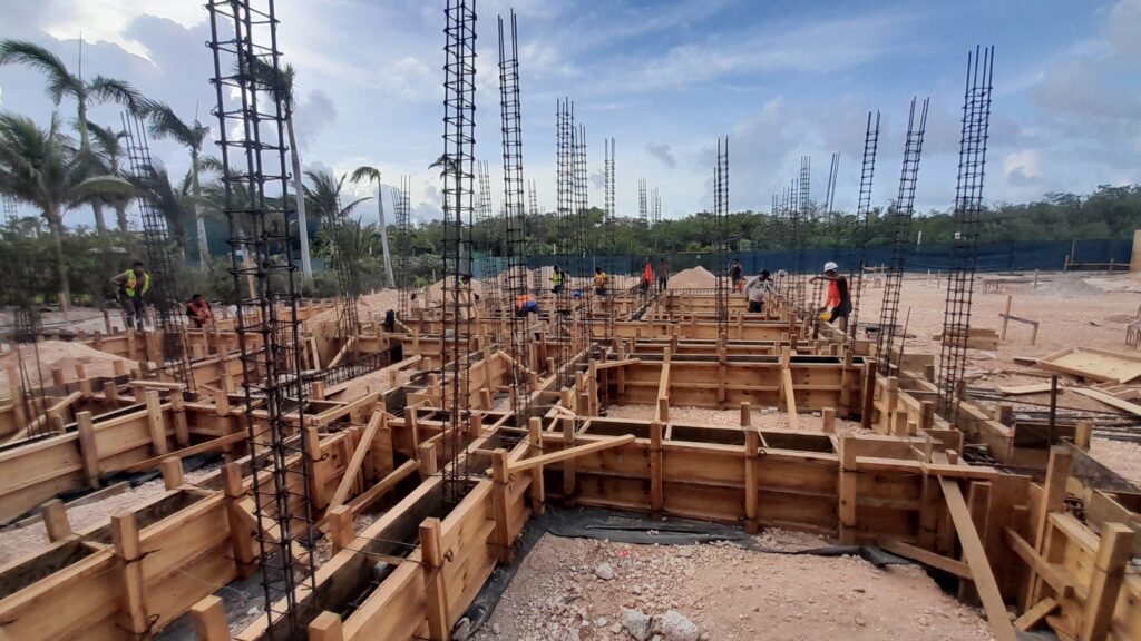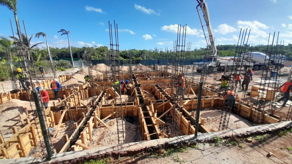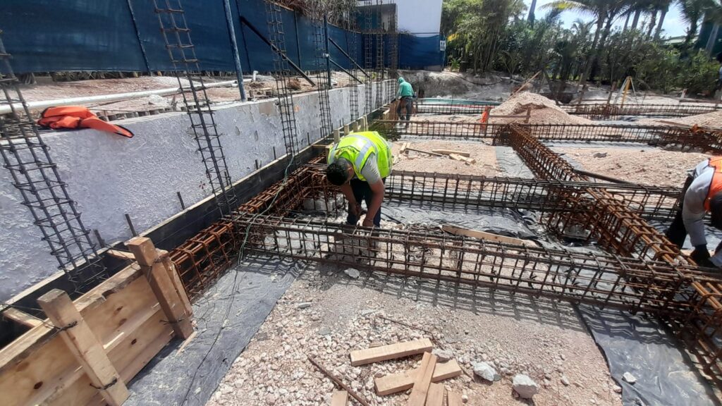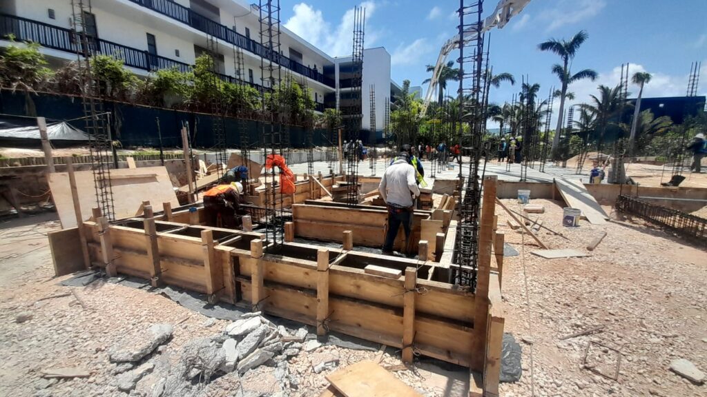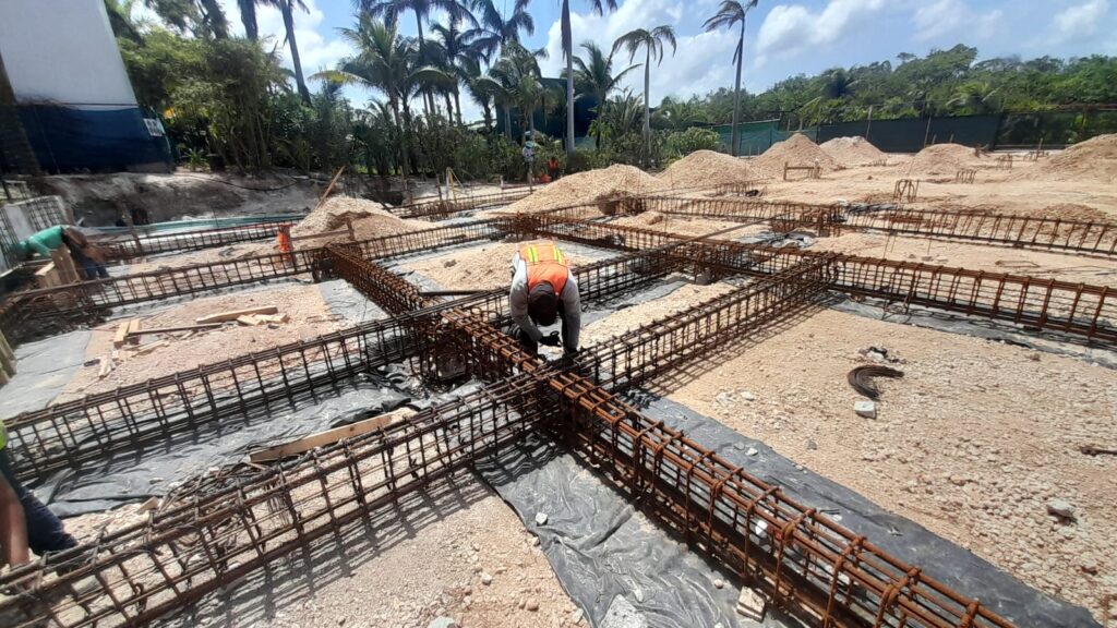 Punta Nizuc Zona Hotelera, Cancún Quintana Roo Alcances: Cimentación Inicio Punta Nizuc Nuestra participación en este proyecto consistió en el descabezado de los pilotes de cimentación, habilitado de acero para dados y contratrabes, así como el cimbrado y colado de los mismos.