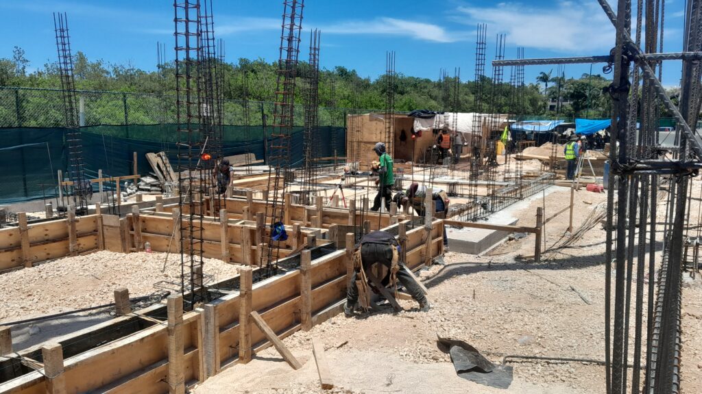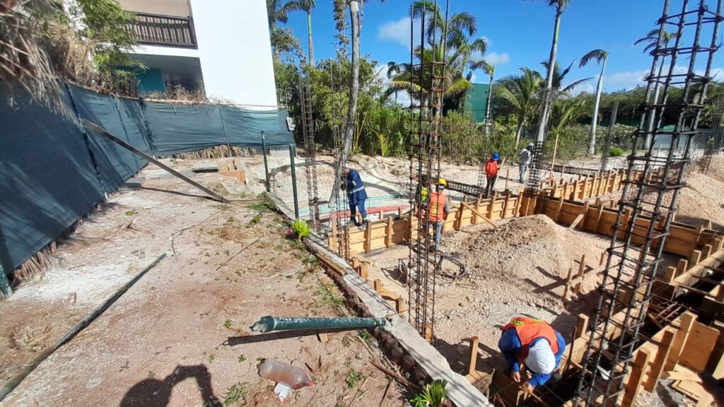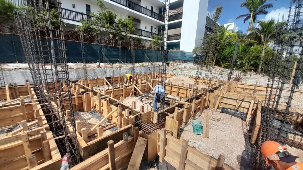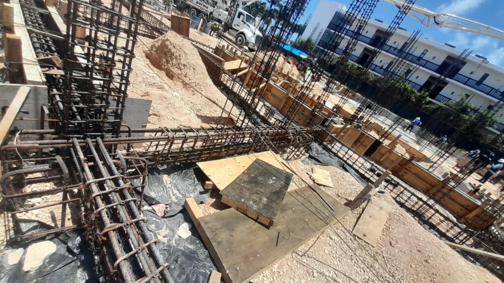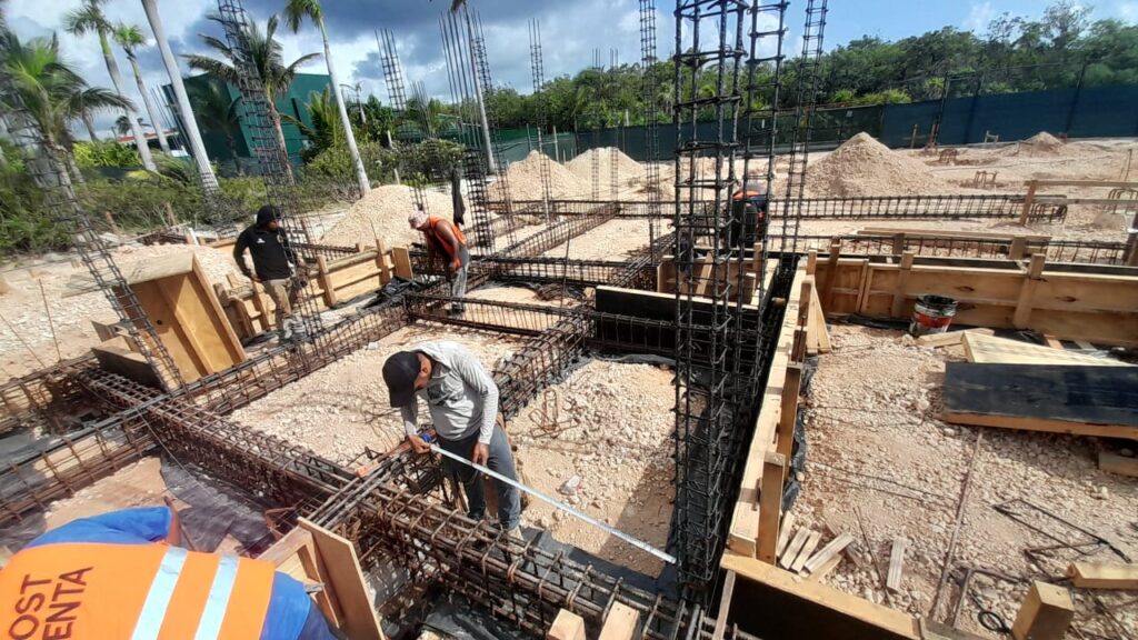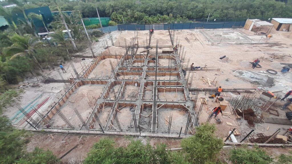 Punta Nizuc Zona Hotelera, Cancún Quintana Roo Alcances: Cimentación Inicio Punta Nizuc Nuestra participación en este proyecto consistió en el descabezado de los pilotes de cimentación, habilitado de acero para dados y contratrabes, así como el cimbrado y colado de los mismos.