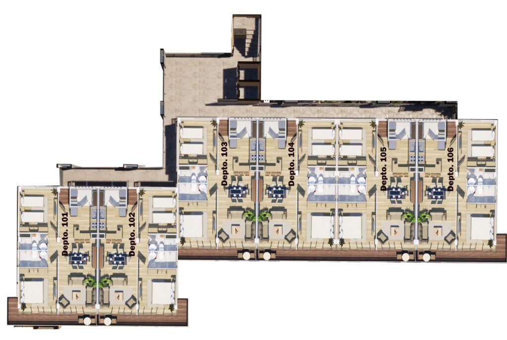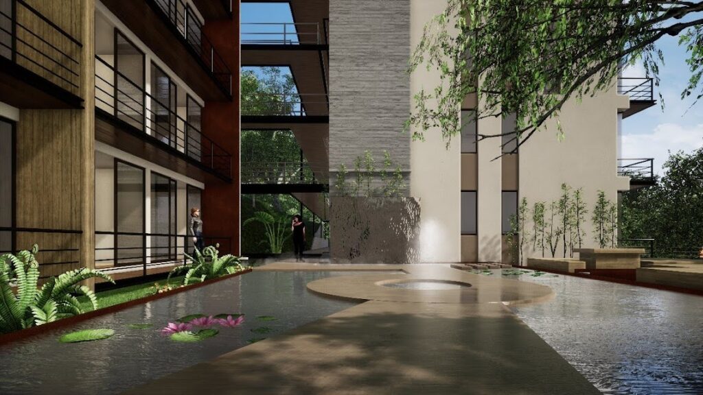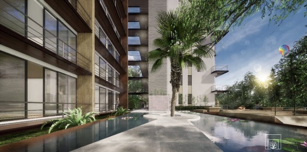 La Torre ‘A’, con sus ocho niveles, ofrece 24 residencias, cada una diseñada para maximizar el espacio y la luz natural. La Torre ‘B’, con siete niveles, alberga 14 departamentos, cada uno con una distribución inteligente y funcional.